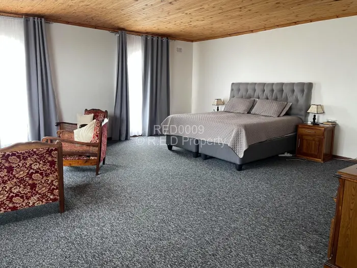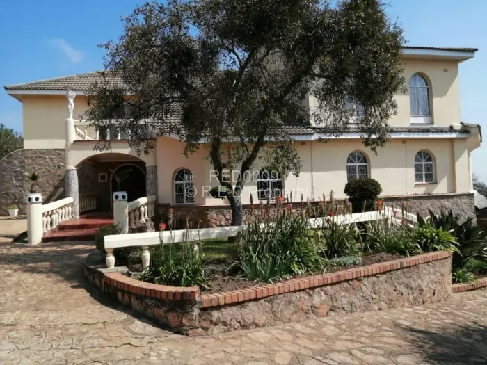 A Portuguese styled brick under tile property with potential for an air bnb or a lodge, comprising of a 4-bedroom main home with 2 en-suite bathrooms, 2 balconies, guest toilet, 2 lounges, open plan dining room which opens to the main balcony, large fitted kitchen with a walk-in pantry and scullery area. Entertainment area boasts a thatched gazebo with braai area and built-in pizza oven, swimming pool, bar with a guest room above which has an en-suite, pool changing rooms.