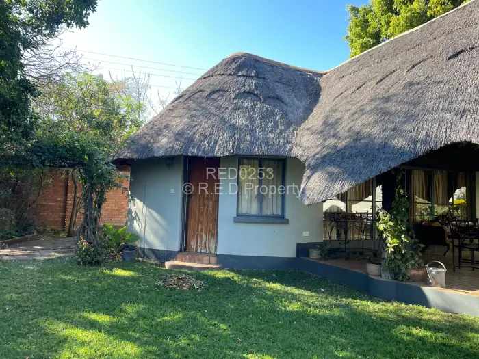 Perfect for entertaining, the thatched lapa-style cottage includes a living area with Jetmaster fireplace, a shower with heating system, toilet, and kitchenettemaking it suitable as a guest suite or leisure retreat. A private sauna adds a luxurious touch.