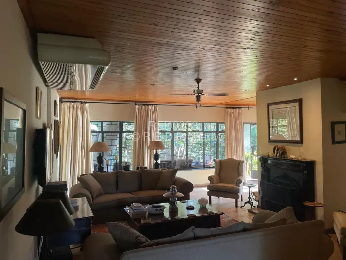 This property also includes separate staff quarters with two bedrooms, bathroom, and kitchenette, as well as an external room offering additional flexibility. A generator room and three storerooms provide practical storage solutions. Two solar geysers contribute to energy efficiency. The home is fully walled and gated, offering both privacy and security.