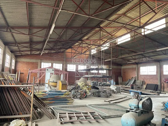 The main structure is brick under a solid asbestos roof and features durable cement screed flooring. Milling skirting has been installed throughout the warehouse in accordance with council specifications. The internal layout includes two staff toilets within the warehouse, a neat reception area, and a practical kitchenette fitted with Monarch cabinets, a single-bowl sink, and a Monarch geyser. The property is serviced by city council water, and ZESA is on a conventional meter.