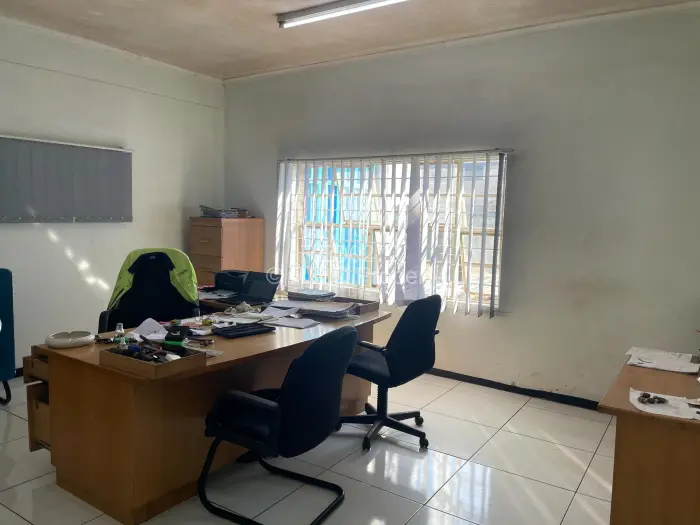 The administration block is thoughtfully laid out. On the ground floor, there is a welcoming reception area, storerooms, and a spacious open-plan office that has been partitioned with half brick walls and glass-aluminium panels. The space is finished with ceramic tiled floors and is complemented by a fitted kitchen and ablution facilities. The upper level accommodates a large boardroom, five executive offices including the Managing Directors office with a private bathroom, as well as a further eight offices and ablution facilities, making it well suited for a professional working environment.