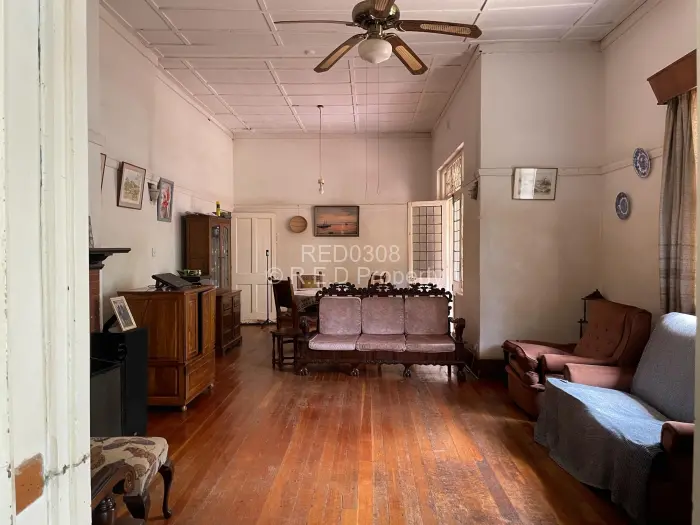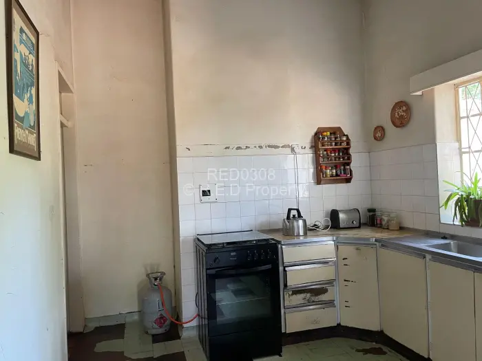 Set on a generous 2 974m stand, this property offers exceptional space, versatile living options and solid investment potential. The main house is brick under corrugated iron and features four bedrooms with classic lead-ins, suspended wooden flooring throughout the bedrooms, passage and living areas, and a main bedroom fitted with built-in cupboards. The family bathroom includes a WC, basin and bathtub. A fitted Monarch kitchen with walk-in pantry and scullery provides practical functionality, though it would benefit from a modern update. The combined lounge and dining room is warm and inviting, centred around a working fireplace, and opens to an enclosed veranda. An external WC is also on the property but currently not functional. Extensions added over the years have resulted in notable wall cracks, and some floors have had termite damage, though treatment has already been carried out.