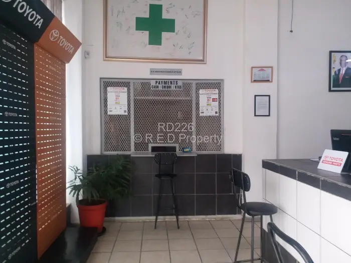 R. E. D Property- This is a well situated Property that is very neat. The property measures approximately 4100 square meters. There is 3 shops and upstairs office space, 170 square meters showroom,60 square meters canteen, 135 square meter offices, 364 square meter shops, 619 square meter workshop, 187 square meter service centre, 667 square meter workshop, 161 square carport and 898 square meter internal carport. There are several outside ablutions and there is borehole available.